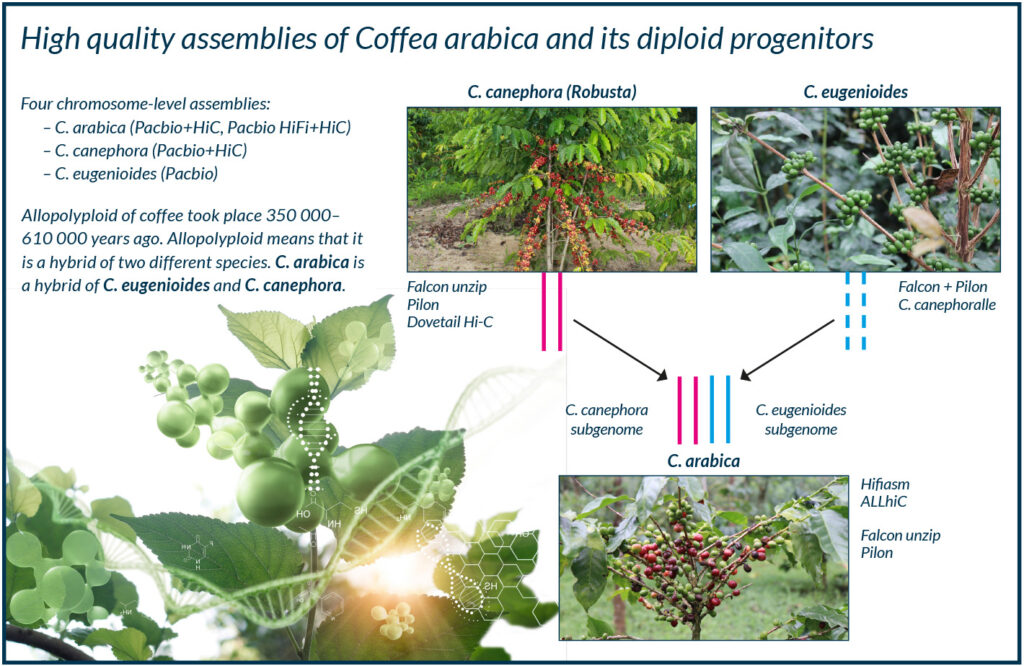 The genome and population genomics of allopolyploid Coffea arabica reveal the diversification history of modern coffee cultivars.Nature Genetics, 56, 721-731 (2024).